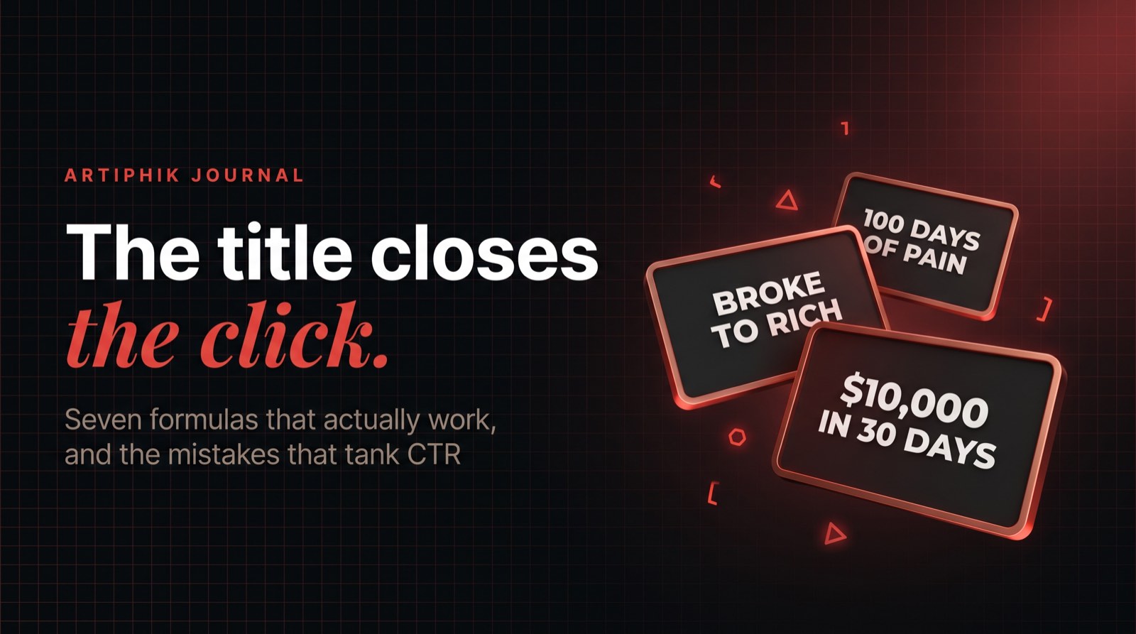- Let the thumbnail carry the gap. A contrast title pairs beautifully with a contrast thumbnail (split-screen, tiny vs huge, old vs new). When the packaging stacks, the CTR compounds.